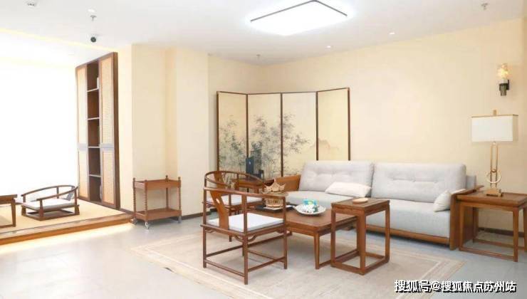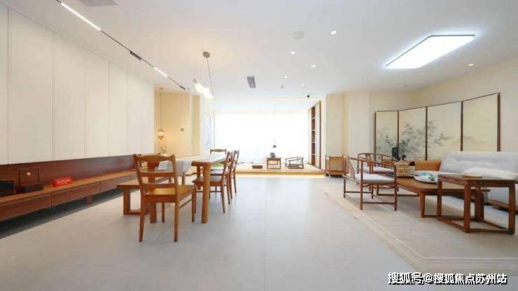 这间东方宋氏美学样板间,将传统韵味与现代生活完美融合。整体色调淡雅,米黄、浅灰等色彩营造出宁静氛围,搭配局部亮色点缀,活泼而不失雅致。