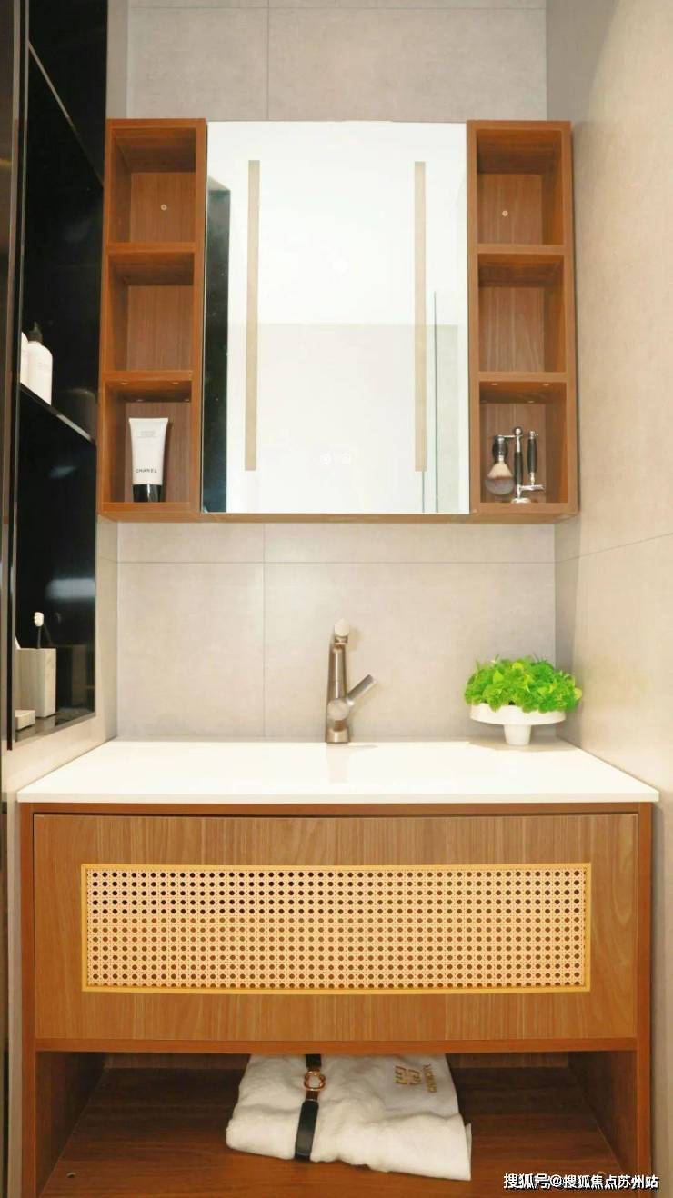 台面上绿植点缀,赋予空间生机与活力,营造出舒适、静谧的私人洗漱氛围。