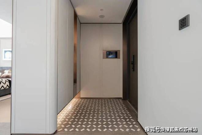 不仅配置给力,设计也独具美学质感,墙面由石材镶嵌意大利毕加索奢石,地面为大理石水刀海派拼花,还没走入家门,品质感已经拉满!同时,入户门为定制浮雕铸铝装甲子母门,门上配有飞利浦六合一智能门锁。
