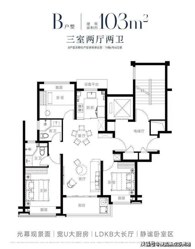 建面约103-104㎡三房2厅2卫
