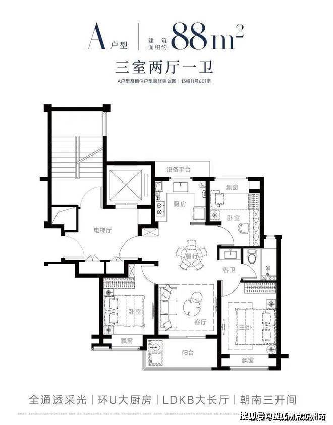约88㎡的满分飞机户型,南北通透、三开间朝南设计,卧室全飘窗设计延伸空间!入户细节打造玄关收纳空间,仪式感十足!U型厨房动线人性化!三分离卫生间设计,实用性更强!专为年轻家庭打造!居住舒适度不输百平三房!