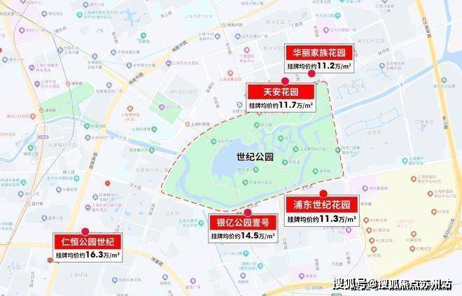 就拿世纪公园来说,以这座公园为中心,周边的房龄在20年以上的二手房挂牌均价起码都在约11万+/㎡。