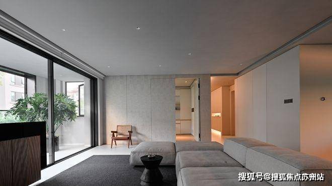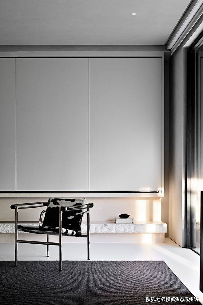 书房被藏在墙面的木色隐形门内,隐形门巧妙地在客厅与书房之间作了缓冲,避免白色“重叠”而造成疲劳感。