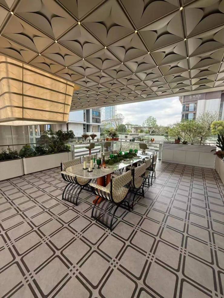 园林景观:打造“一轴四境十景”漂浮花园,85米宽超级门厅+9.5米挑高鎏金门头,归家仪式感拉满;曲苑连廊、叠水景观交织,成年树木与时令花卉错落排布,每一次归家都是穿越风景的旅程