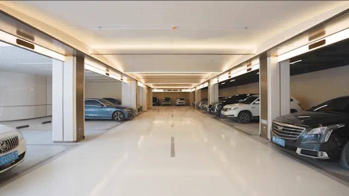 地上空间的美学感受随着车行归家动线也延伸到了地下,海上清和玺的地下车库,不仅精装交付,还首次提出“中央车站”概念。