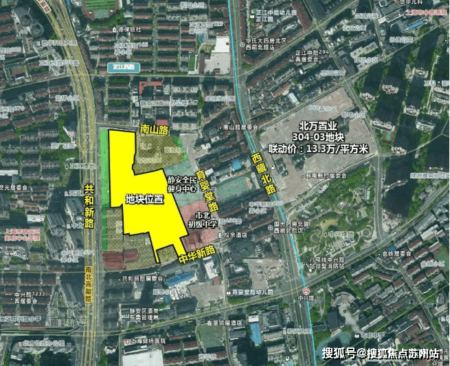 项目东面就是北万置业地块,仅隔一条西藏北路,直线距离约400米,该地块房地联动价为13.3万/㎡。静安区洪南山宅240街坊项目未来入市价格可供参考。