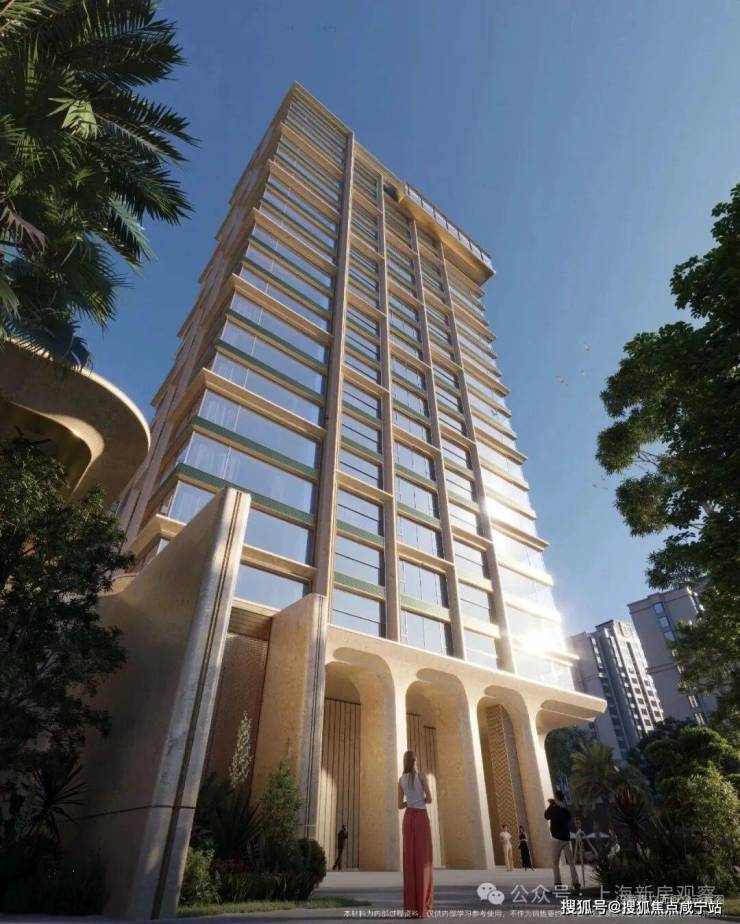 该方案亮点颇多,总计八幢高层和小高层设计,最南端的1#和2#楼均设置有私家泳池,而且还在19F采用了住宅楼当中较为少见的悬挑工艺,延伸出了一定的使用空间,个人预估这两幢会是配置大平层豪宅产品。