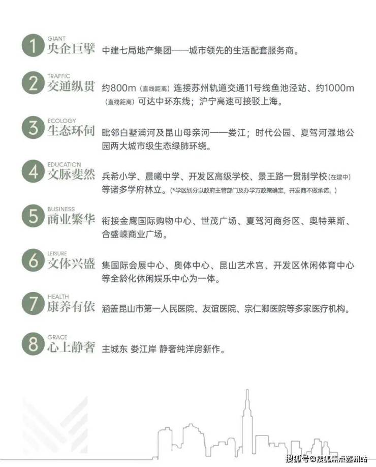 该楼盘由昆山市嘉恒房地产开发有限公司开发,品牌隶属于中建地产。小区车位充足,周边配套相对完善,3 公里内有多所幼儿园、中小学,附近有医院、公园、商场等设施。交通便利,距离苏州轨道交通 11 号线鱼池泾站约 800 米(直线距离),约 1000 米(直线距离)可达中环东线。具体信息可能会有所变动,建议关注楼盘最新动态或咨询售楼处。