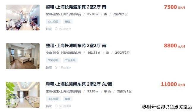 给大家参考一下附近租金,我选择了上海长滩前期的2房户型,租金至少在7500元/月,非常可观。