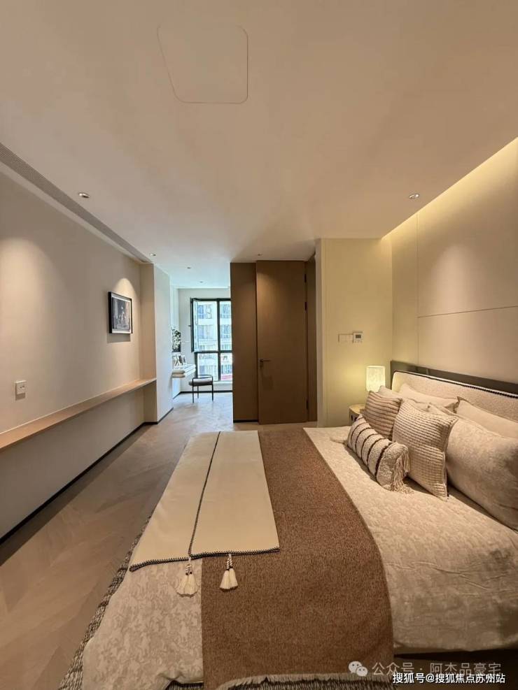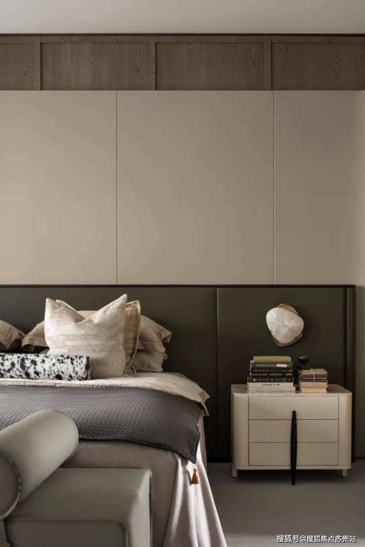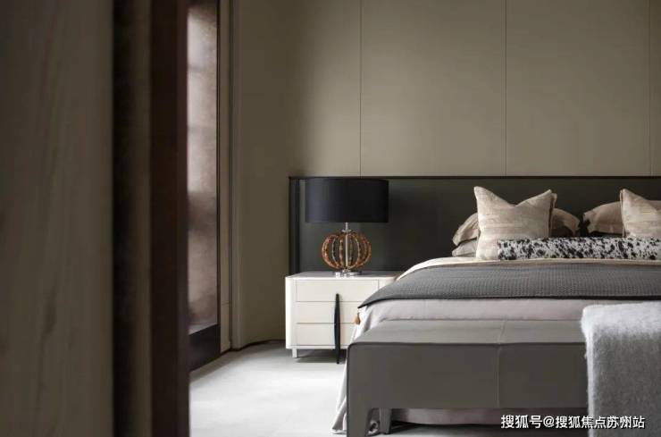 沿阶步入三层,进入独属于主人的居室。光影的碎片中,弥漫着幸福而慵懒的诗意。衣帽间的两侧还分别置有安宁享受的汤屋,以及功能完备的化妆厢。