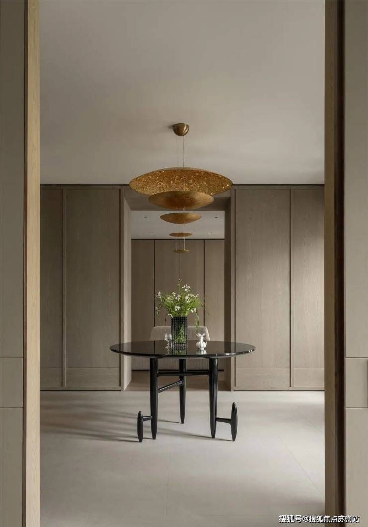 沙发的金属结构件来自装饰艺术的结构纹样。样式采撷自海派建筑的窗帘盒,纵向瓦楞线条的餐桌,亦或是弄堂门楣为灵感的门套,完成了海派文化关于美学的多元对话。