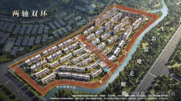 而且项目整个地块三面都被绿地与河道包裹,尤其是项目东侧,公共绿地、滨河景观带、城市生态走廊此地排列,天然具备构建多层次景观视域的条件。
