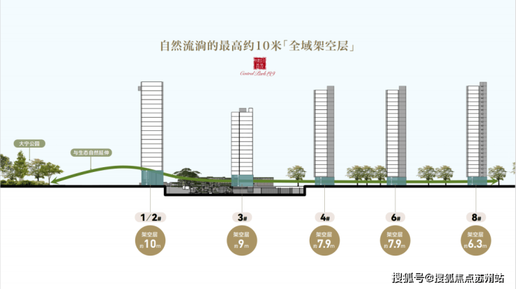 向内,项目更是以令人惊叹的魄力,打造了约6-10米超高层级全域架空设计。