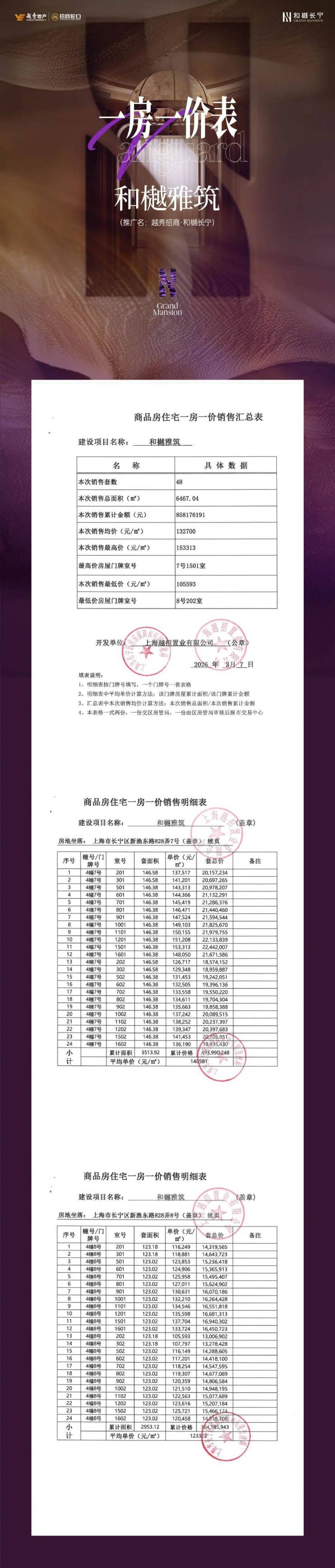 本宣传资料属于要约邀请,不作为要约或承诺,资料中对项目周边环境、交通/公共设施、政府规划、商业配套、教育资源、发展/投资前景、区位等的展示或介绍,旨在提供相关信息供参考,开发商对此不做任何承诺,相关宣传内容不排除因政府相关规划,规定及开发商未能控制的原因而发生变化。买卖双方的权利义务,以最终订立的《商品房买卖合同》及附件等协议约定为准,本项目备案名为【和樾雅筑】,开发商为【上海越招置业有限公司】,预售证号:长宁房管(2026)预字0000041号,本资料发布时间为【2026】年【3】月,有效期为[3]个月。