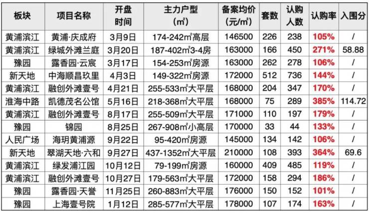 新房项目认购率皆是100%起步,最高达到385%,最高入围分114.72分!