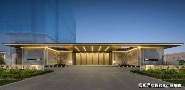 入口两侧油橄榄树姿态优雅,自带松弛感;归家序厅两侧有种植桂花树,隐喻"蟾宫折桂"的祝福;地面铺装芝麻黑花岗岩与福鼎黑花岗岩,不仅沉稳大气还有活泼灵动……