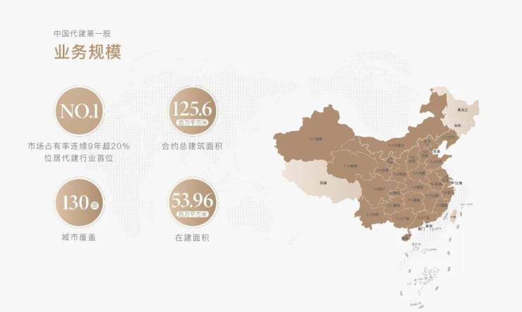 涵盖128个城市,总建筑面积122.8百万平方米(其中商业代建90.1百万平方米、政府代建32.7百万平米),在建面积53.2百万平方米(数据截止至2024年6月30日).
