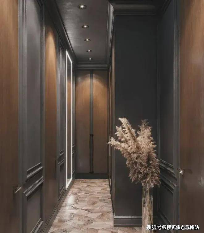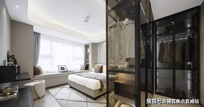 进入主卧,映入眼帘的衣帽间形成了一个微玄关,产生出一套隐私缓冲空间,衣帽间与主卫相连,化妆洗漱两不误,女主人亦能感受到友好.