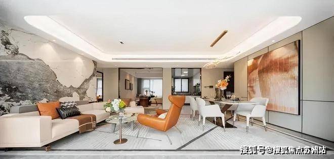 开间约6.9m的大横厅,在苏州市面同面积段赛道上也是出类拔萃,把景观阳台合并进室内后,LDK社交区面积更是堪比建面160㎡以上产品,生生把143㎡户型做出了十足的豪宅级客厅感.