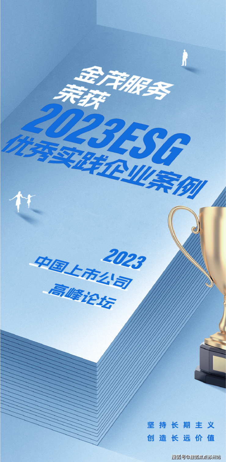 11月28日至30日,2023中国上市公司高峰论坛在福建晋江举办。在“拥抱ESG 上市公司发展必由之路‘绿色低碳融合创新’”分论坛,金茂服务凭借在可持续发展领域的持续深耕与丰富的品牌化运营经验,荣获2023ESG优秀实践企业。