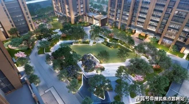 约3500㎡的中心庭院景观,地面整体抬升,去台阶化的设计对孩子、老人等更为友好。配合四季不同的植被,打造一片家门前的四季花园。