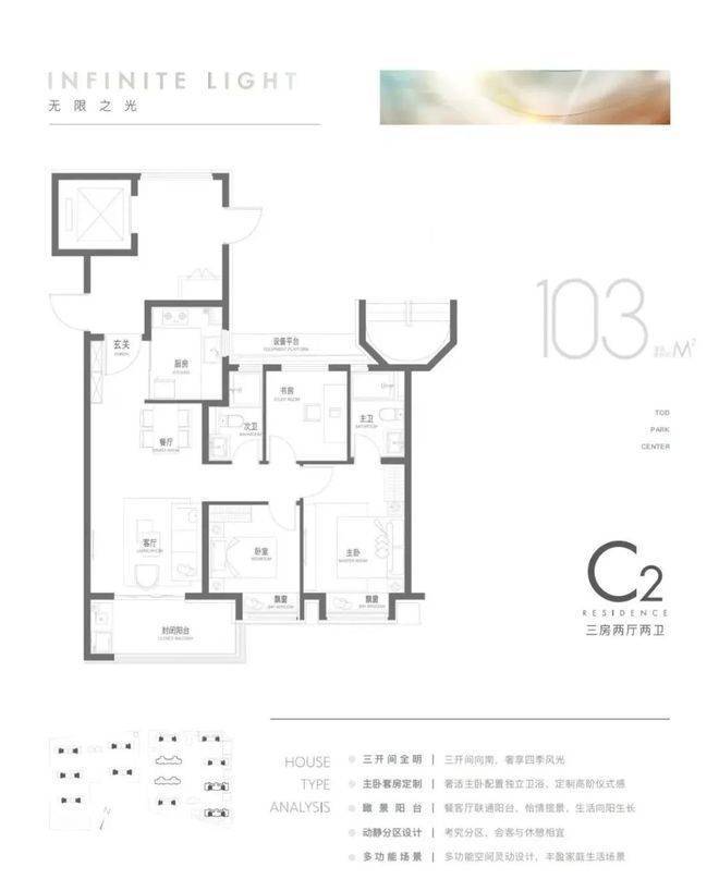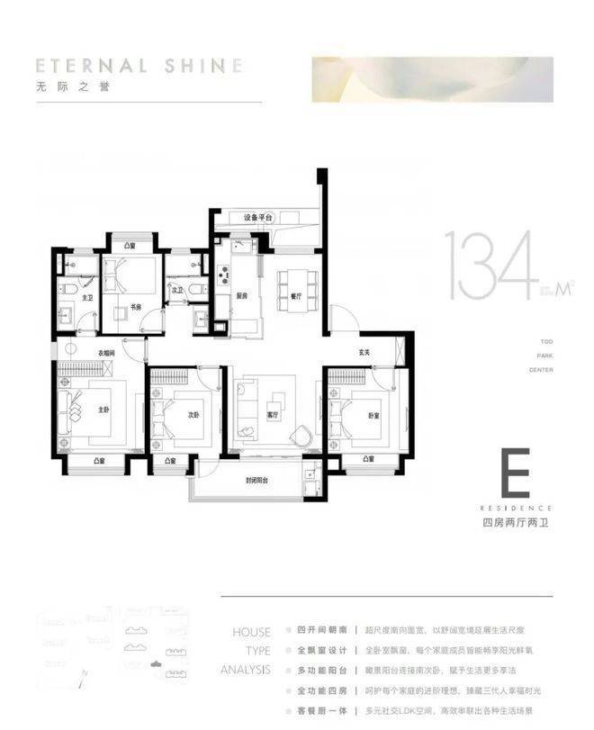 LDKB一体化设计打造35㎡公共空间,聚餐、孩子骑行互不干扰;主卧套房配备独立卫浴与步入式衣帽间,独立书房、家政间功能分区明确,多代同堂也能互不打扰。3.15米层高+两梯两户配置,带来远超普通住宅的舒适感与私密性。