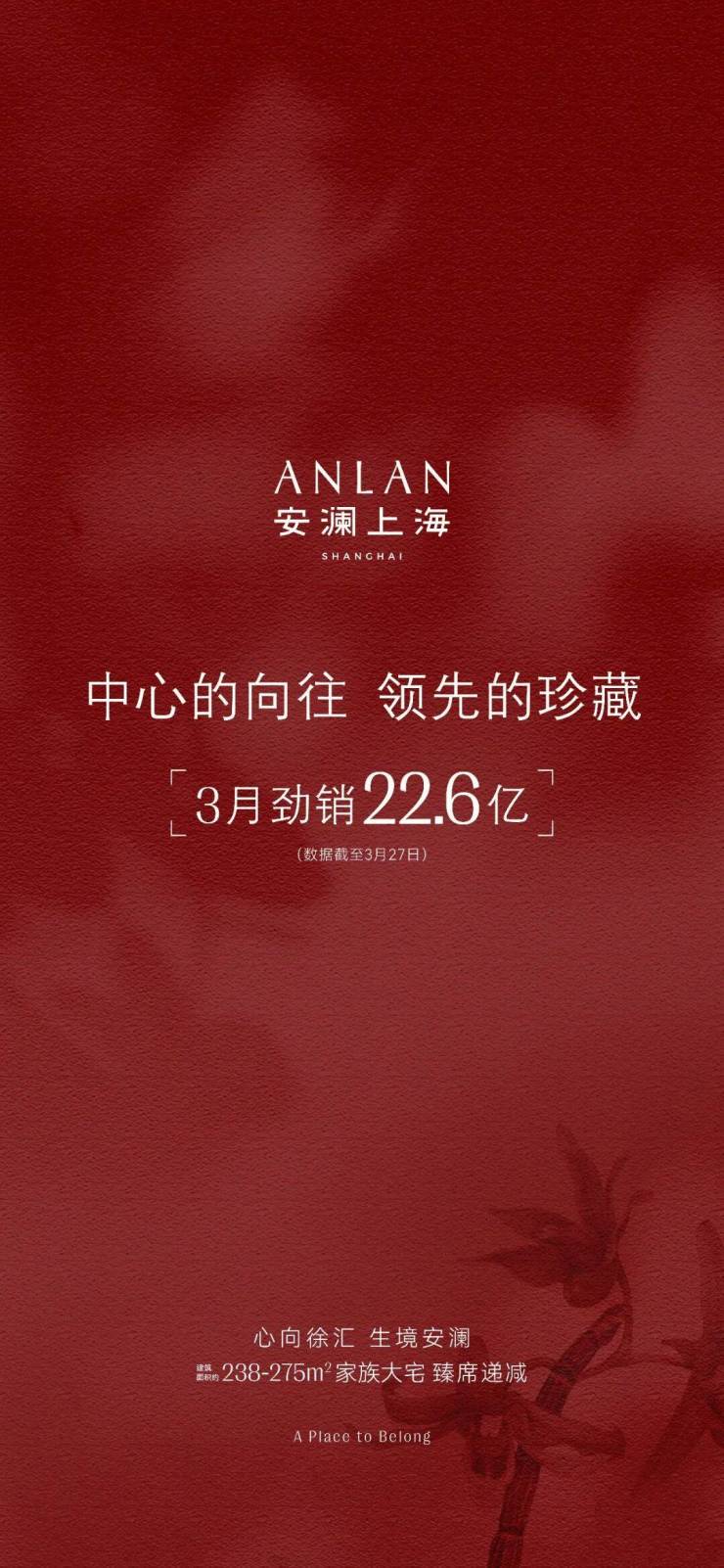 3月,安澜上海劲销22.6亿,以断层式领先优势,成为上海顶豪市场当之无愧的风向标。