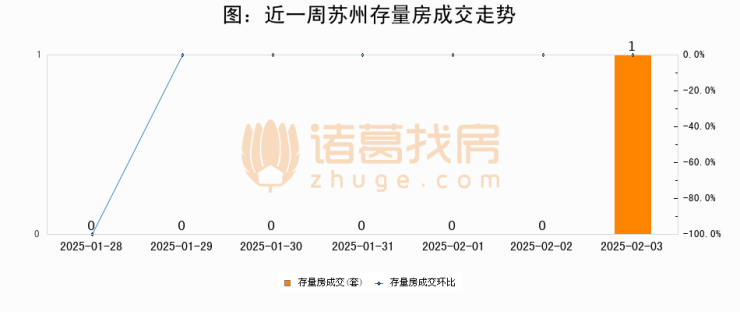 从存量房来看,2025年02月03日苏州存量房单日成交1套,比昨日增加1套,环比上涨0%。从近一周存量房成交来看,苏州存量房日均成交套数为0套,02月03日单日成交1套,高于近一周平均水平0%。