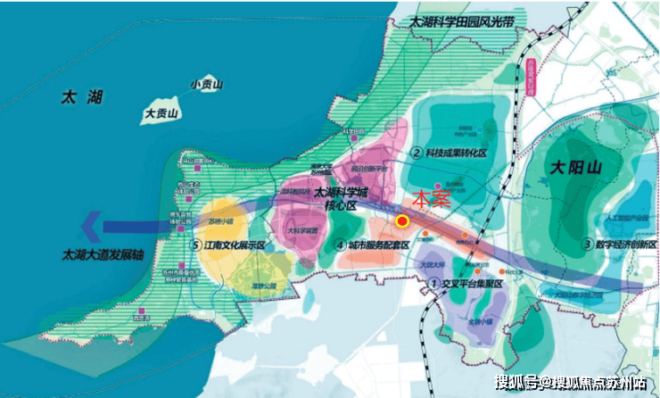 区域内打造国家级战略“中国太湖科学城”,建设世界级生态湖区、创新湖区;整体规划是“一山一湖、一轴一带,一核多区”;