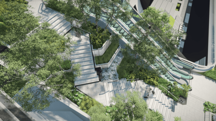 除南侧无敌城市视野外,楼王北侧与3#楼间距约60米,享奢阔栋距,同时又将森感公园的葱郁树冠纳入窗前画卷,南北景观环绕。值得一提,项目高线公园打造“三大花园·六大游园”体系,提供丰富的体验场景,而在楼王东侧就是三大花园的其中之一,也是艺术感最强的一个花园,将结合艺术装置和台阶,为业主提供舒适闲坐、眺望树冠景观的空中露台。