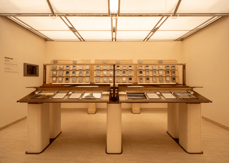皇家白奢石、Prada绿皮革面奢石、砖纹定制铝板...细节中透露出精致与考究。工艺工法间对72种奢材的展示,让人心悦诚服。
