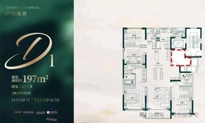 建面约188-197㎡4房2厅3卫户型