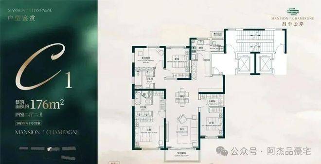 建面约176㎡4房2厅2卫户