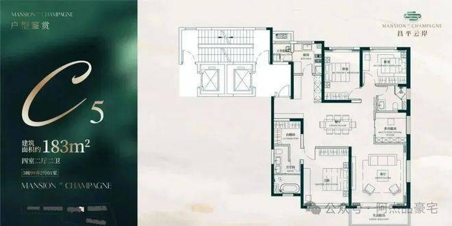 建面约183㎡4房2厅2卫户型