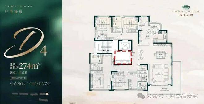 建面约274㎡4房2厅5卫户型