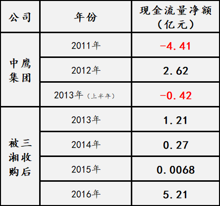 三湘收购前后,中鹰的账面收入都不尽人意,收购前更是入不敷出
