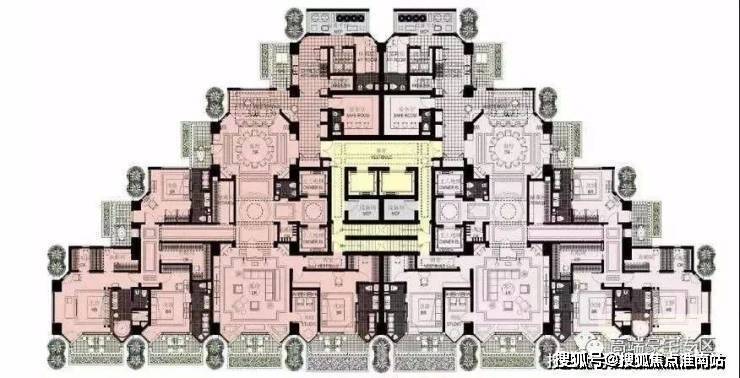 项目分三期开发,本次开盘为2号楼,预计今年开盘,2号楼户型分布为一层4户,中间两套为375平米边套为680平米复式,总楼层39层,有两层为避难层,避难层会改造成绿化休闲区。