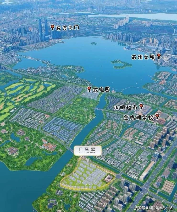 「晋墅」落子园区双湖正核——东延路南、西华林街东,直面独墅湖一线湖景,西眺金鸡湖大酒店,南侧为无遮挡绿地,堪称“双湖半岛秘境”。地块容积率仅1.02,是苏州近年罕见的低密宅地,与绿城玫瑰园同享双湖顶配资源。