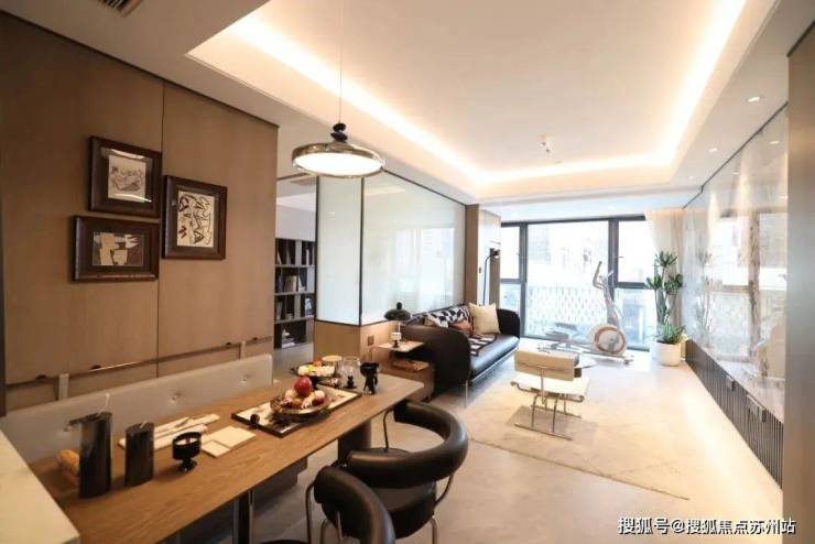 LDK客餐厨一体化设计,通过金属玻璃移门+餐厨岛台的联动场景,升维更轩阔的公区会客厅,呈现全龄共享式家庭活动中心。