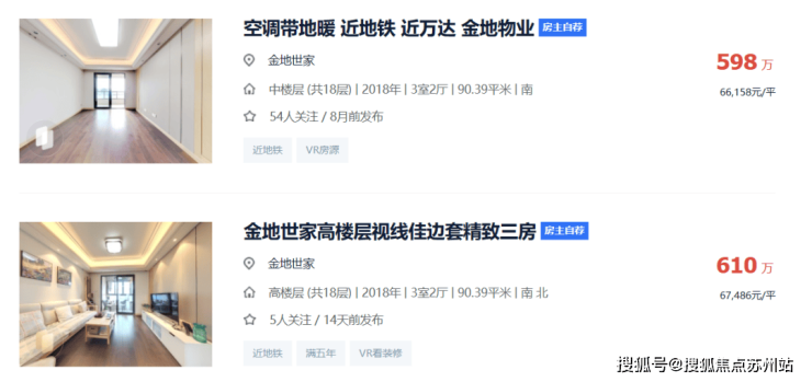 金地的二手房溢价普遍比较高,比如”地铁房+高品质“组合的金地世家,高层6.5万/㎡+的挂牌价比周边高出约1.5万/㎡。