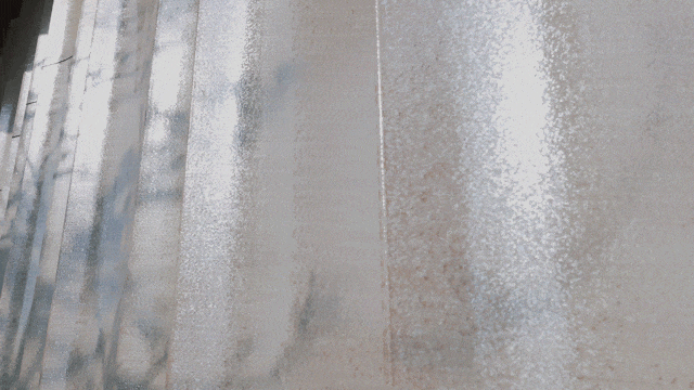 以宜兴陶都当地紫砂泥页岩粗犷为主、匠人花费3天2夜1200°C高温立胚釉烧,打造而成的釉面陶板,在阳光的照射下,显现出如珍珠般的温润质感,增添了一抹独特的韵味。