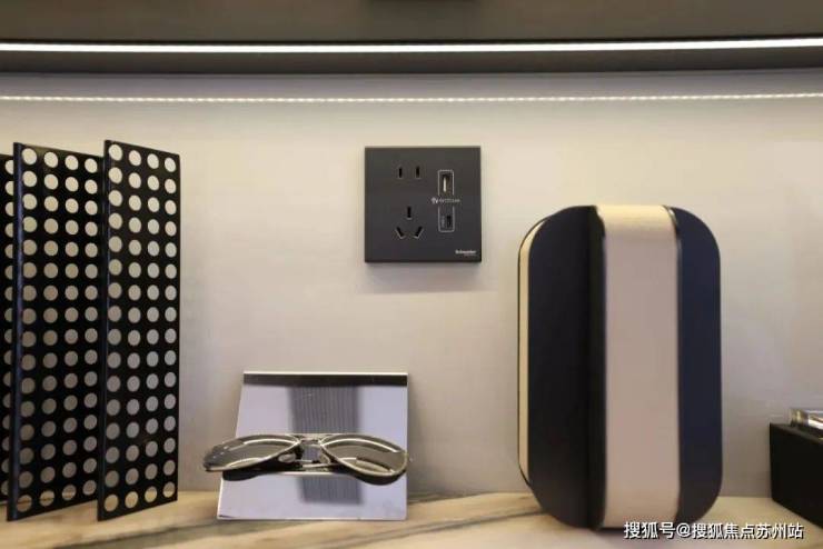 还有一些小细节,也体现了金地嘉峯汇在装修上的贴心。入户玄关上与时俱进的配备了带type- c接口的插座,同时插座上的二孔和三孔错位,使用不打架。面包锁相比传统把手,给人更加温润的感觉,也提高了安全性。