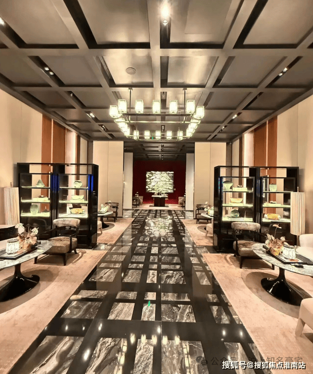 材料选用意大利石材,BVLGARIHOTEL大理石,铝型材塑型红,四层金属网格墙面以及梧桐叶金属屏风等!打造独属老静安的记忆符号,高奢定制,市区豪宅调性拿捏!