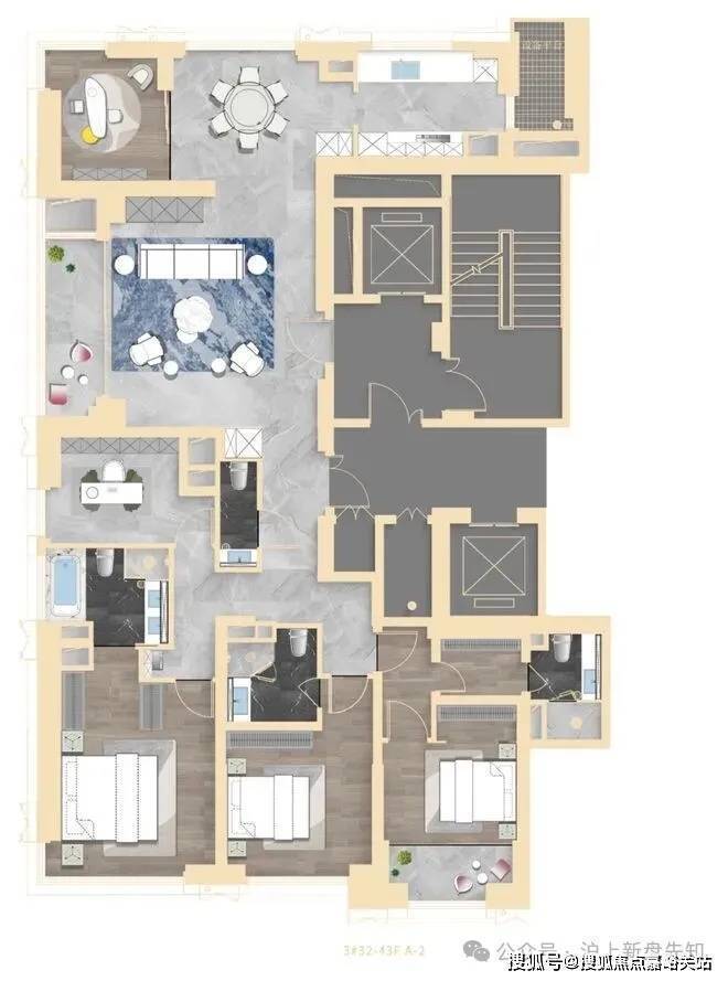 尤其主卧星级套房,配置独立衣帽间、书房,奢华主卫四分离,双台盆+淋浴区+大浴缸+智能马桶,私密性&奢适度无敌;