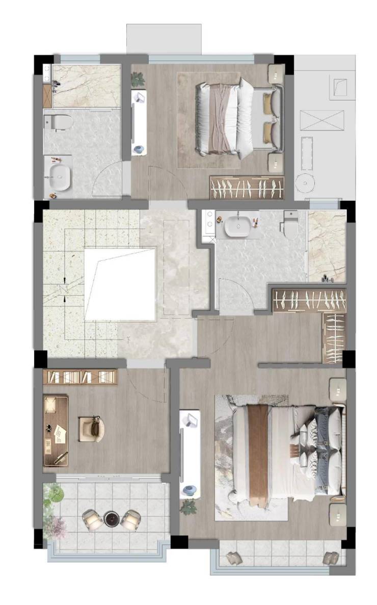 二楼双套房设计,完全可以满足三代同堂+二胎家庭的双重需求。