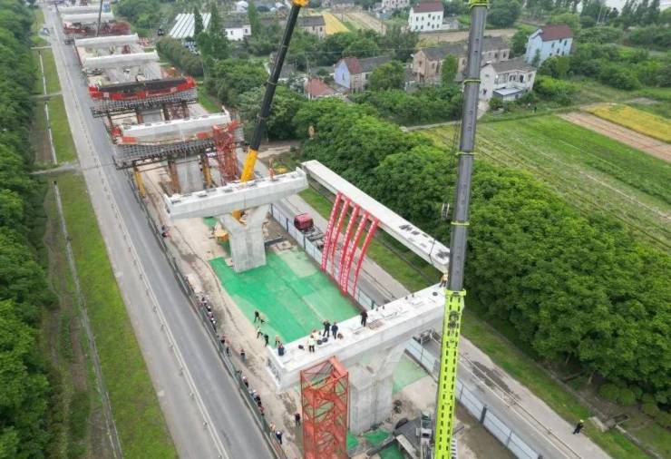 就在5月12日,“一环11射”里的海盐射线,迎来突破性进展——成功架设首片混凝土箱梁,正式进入上部结构现场施工阶段!