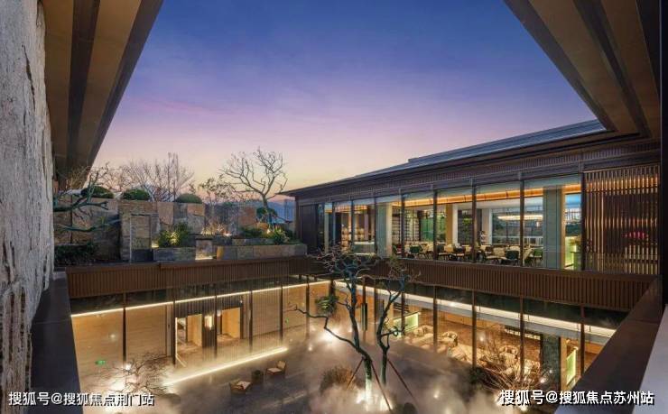 颐萃别院还大手笔打造了长约32米的大门,用60吨太行山老石皮砌起了厚重的背景墙,搭配日本进口的罗汉松等珍贵树种,从归家开始就透露出精致又奢华的氛围感。