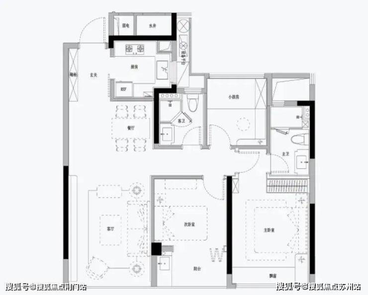 这次首开的40号楼和加推的41号楼,是中间套95方户型和边套的97方户型。个人觉得从户型来看也是碾压同面积段竞品的设计:90%的得房率,95方户型做出了三房双卫+9.8米三开间朝南的设计,而且三个房间,没有一个是凑数的,全部宽敞方正明亮;边套97方户型一样很优秀。进门就被开阔的边厅吸引了,客厅的沙发区域可以做出270°的L型环绕组合式,飘窗被巧妙地利用起来,容纳十几个亲朋好友同时入座也毫无压力,而南向双阳台更是达到了6.4米的宽度。