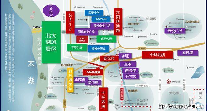 「交通」中环西线北延、312国道、太阳路、高铁新城区站、地铁3号线浒关站、硕放机场