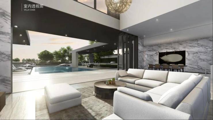 项目从此前曝光的设计方案就可以看出亮点,每一排别墅前都有一条渠道,引入水系,可以停游艇。